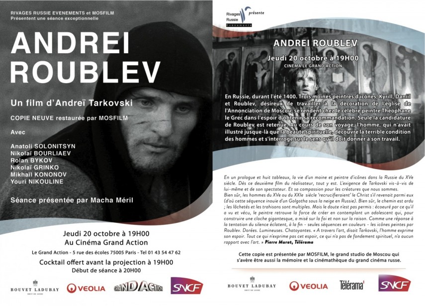 Le jeudi 20 octobre à 19h00 au cinéma Grand action aura lieu la projection du film Andreï Roublev réalisé par Andréï Tarkovski dans une COPIE NEUVE RESTAURÉE.